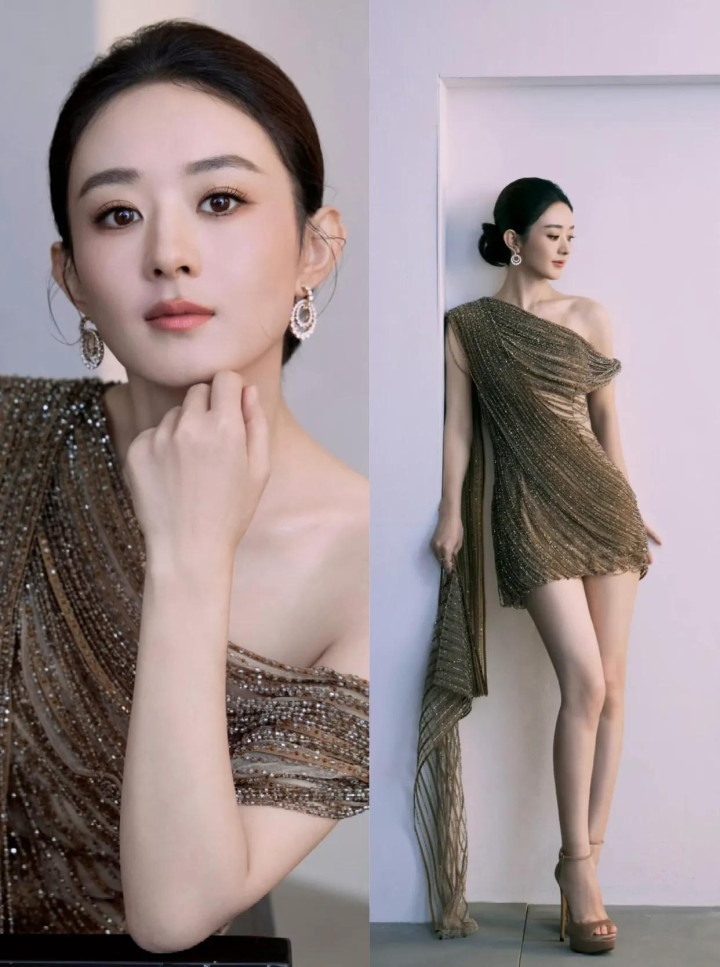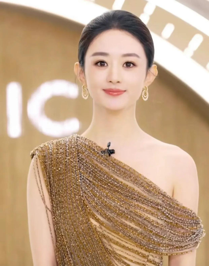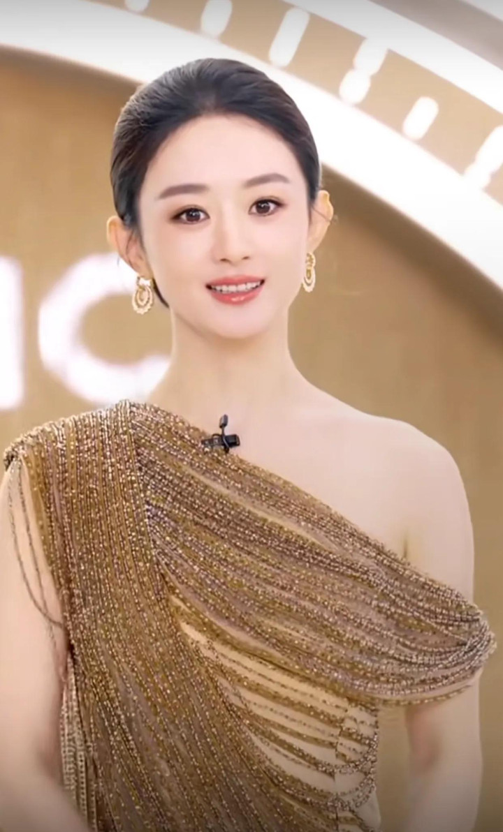 每一步都踏在人心上,利落的盘发更凸显出她的优雅肩颈线条,还是黑发的赵丽颖更显落落大方